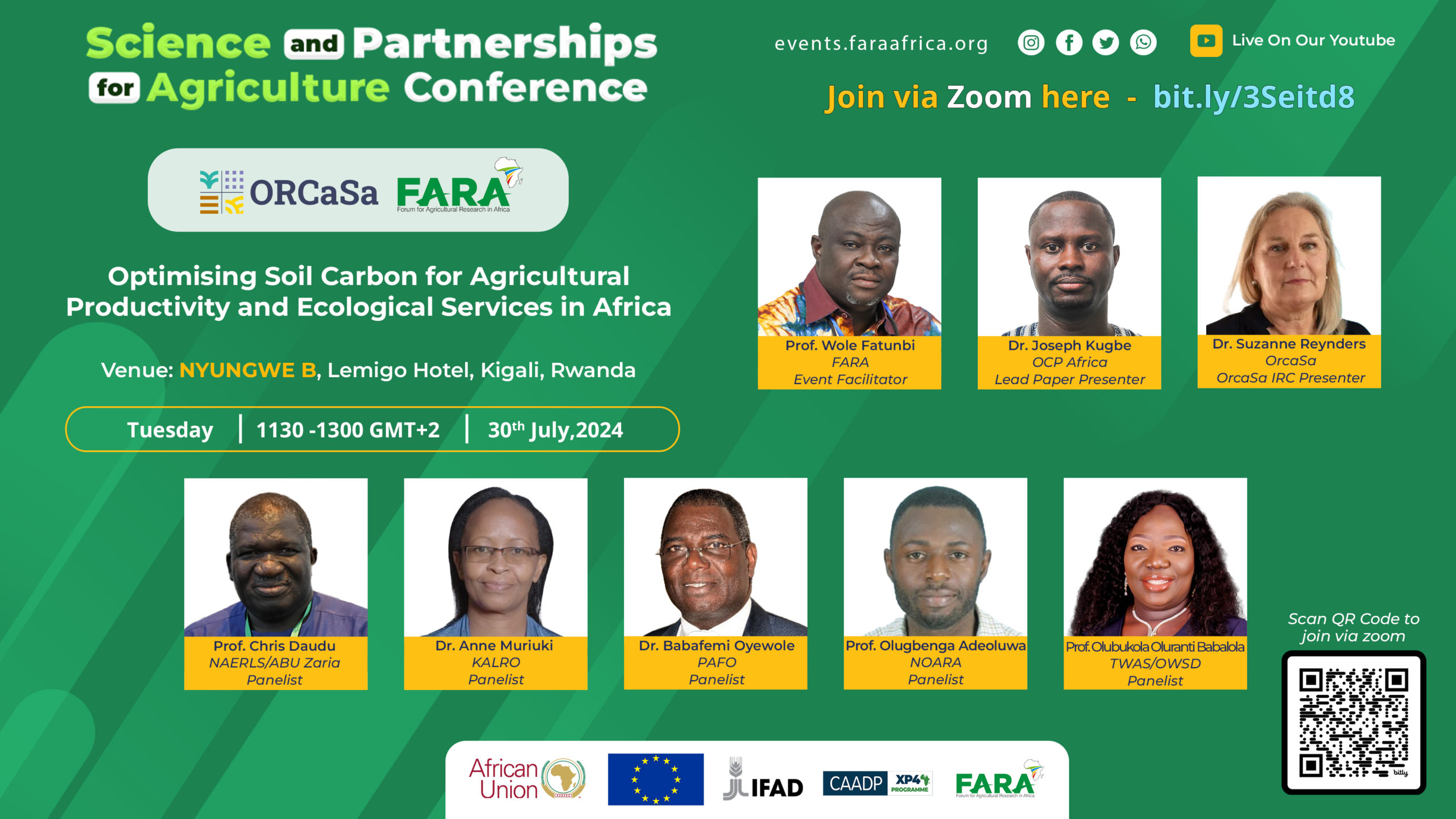 This year, the Science and Partnerships for Agriculture Conference (SPAC) is including the ORCaSa side event in its programme: ‘Optimising soil carbon for agricultural productivity and ecological services in Africa’.
